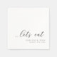 Ces élégantes serviettes "Let's eat" sont idéales pour décorer un petit-déjeuner ou un dîner de mariage classique et minimal. Les noms et la date ci-dessous peuvent être modifiés.