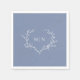 Créez le cadre de réception parfait avec nos élégantes serviettes en papier monogramme. Le design comporte une couronne botanique feuillue encerclant les initiales monographiques de la mariée et du marié sur un arrière - plan bleu. Personnalisez le design avec les initiales de la mariée et du marié.