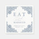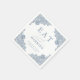 Serviettes en papier mariage bleu rustique et poussiéreuses ornées d'élégantes dentelles florales.