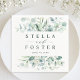 Cette serviette mariage présente des eucalyptus à l'aquarelle peinte, du vert botanique et des feuilles bleu clair.