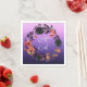Serviette En Papier Élégant Mariage de monogramme floral noir et pourp