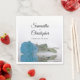 Ces magnifiques serviettes mariages ajouteront style et classe à votre réception, dîner de répétition ou autre événement mariage. Elles présentent un design simple mais élégant et romantique avec un unique bleu ciel à long tige, turquoise ou bleu azur rose réfléchissant dans un bassin d'eau avec vagues et ondulations. Au-dessus du rose se trouvent les noms du couple et la date du mariage.