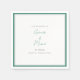 Célébrez votre journée spéciale avec ces serviettes mariages élégantes et élégantes. Décorées dans un style minimaliste avec une touche de vert émeraude, ces serviettes s'harmonisent parfaitement avec n'importe quel thème mariage. La police de script simple mais sophistiquée ajoute une touche de classe, tandis que les noms et la date ajoutent une touche personnelle. Le papier de haute qualité assure la durabilité et une sensation luxueuse. Impressionnez vos invités avec ces serviettes belles et fonctionnelles qui seront un gardien chéri dès votre mariage.