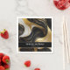 Serviette En Papier Elégant Mariage marbré Faux Gold, noir & blanc