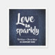 Bois sur nous ! Célébrez votre fiançailles mariage ou douche nuptiale avec luxe. Faux parties scintillant arrière - plan complique la citation amusante et drôle "L'amour est étincelant". Mettre à jour le nom et la date modèle à Future Mme et M. avec la date mariage. Santé! Nous sommes fiancés ! Quelle façon moderne, simple et élégante de créer des souvenirs. Disponible dans une variété de couleurs scintillantes.