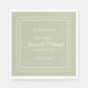 Des serviettes en papier de réception vert et blanc à la sauge moderne, chic et élégante, avec les noms de la mariée et du marié et leur date de mariage. Le texte est une police de script élégante.