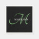 Serviette En Papier Élégant Monogramme moderne noir vert Script