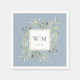 Serviette En Papier Élégant Monogramme Or Dusty Blue Greenery