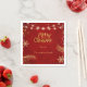 Snowflakes fête de Noël rouge & doré serviettes avec des flocons de neige et des lampes à cordes sur l'arrière - plan rouge vibrant. Déposez votre propre nom de famille ou celui d'une autre personne ou supprimez le texte si vous voulez une conception plus simple. Correspondance d'éléments dans mon magasin UnuqieDesigns.