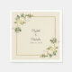 Élégante et chic serviettes en papier mariage, avec des roses romantiques à la vanille blanche, avec des touches rose vif de, exposés dans la verdure verdoyante sur un arrière - plan intemporel en coquille d'oeuf. Un cadre carré doré branché apporte une touche pétillante. Personnalisez les détails du mariage avec vos noms et la date du mariage dans des lettres et des scripts au charbon de bois élégants. Ajoute parfaitement aux festivités de votre jour de mariage !