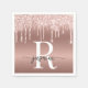 Elégant Fille Glam Blush Rose Gold Parties scintillant Drips Ombre Metallic Monogramme Nom Signature Script Custom Papier personnalisé Napkin. Ce design avec votre prénom dans un joli style lettré en forme de queue d'écharpe signature typographie (ou calligraphie) avec initiale sur rose rose rose rose rose rose blush faux feuille métallique ombré avec parties scintillant éclatante de glam perçant la bordure. Ils sont faciles à customiser. Idéal pour l’anniversaire, mariage, fête de bachelorette, fête de 16 ans, douche nuptiale, baby shower, pour la fête de remise des diplômes et C’est pour la fille qui aime les choses uniques scintillantes et élégantes.