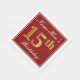 Cette conception simple et élégante de serviette en papier comporte un message comme "15e anniversaire de Name-Here’s" (le "15e" ayant une fausse couleur dorée) dans une zone carré de couleur rouge avec un contour de bordure simple. Le nom est dans un texte de type script de couleur blanche, et peut être customisé. Des serviettes comme celles-ci pourraient être utilisées à une fête d'anniversaire pour quelqu'un qui célèbre son quinzième anniversaire. [~Z0000138]