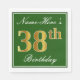 Serviette En Papier Elégant Vert, Faux Or 38ème Anniversaire + Nom