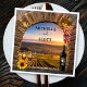 Une serviette en papier romantique à thème vin, avec une arche romaine avec du raisin, des verres à vin, une bouteille de vin et des tournesols surplombant un magnifique paysage viticole. Belle pour un thème de vin, cave ou vignoble mariage ou autre célébration.