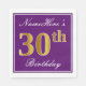 Serviette En Papier Elégant violet, Faux Gold 30e anniversaire + Nom
