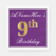 Cette conception simple et élégante de serviette en papier comporte un message comme "AnameHere’s 9th Birthday" (avec le "9th" ayant une fausse couleur dorée) dans une zone carré de couleur violette avec une bordure simple. Le nom est dans un texte de type script de couleur blanche, et peut être personnalisé. Des serviettes comme celles-ci pourraient être utilisées à une fête d'anniversaire pour quelqu'un qui célèbre son neuvième anniversaire. [~Z0000140]