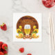 Serviettes élégantes Oktobefest avec une quille en bois décorée, un verre de bière, bretzels, chrysanthèmes jaunes, et texte modifiable pour personnaliser votre événement.