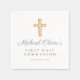 Serviettes de première communion personnalisées et élégantes Croix Bleue Dusty. Partie de la Suite de première communion Dusty Blue Script Cross Boy avec invitation, papeterie et accessoires de première communion.
