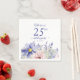 Ces élégantes serviettes modernes de fête du 25e anniversaire sont dotées de fleurs d'été rose et violet nom et date à personnaliser. Conçu par Susan Coffey.