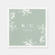 Sage Green Elegant Vintage Wedding Reception Cocktail Napkins : Ces magnifiques serviettes de réception de mariage carré présentent des fleurs élégantes et délicates aux coins entourant vos initiales et votre date de mariage. Ils sont parfaits pour un élégant mariage vert sauge, un dîner de répétition ou une fête de fiançailles !