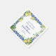 Conçu pour s'harmoniser avec la collection de citron Jenny's, cette serviette de douche nuptiale présente des bouquets de citron jaune décorant un carrelage bleu carré et un cadre doré. Elle a trouvé sa Squeeze principale commence le texte de la douche nuptiale. Le nom de la mariée et la douche de la mariée suivent écrit dans une police de caractères moderne et tendance. La date complète le texte. Tout le texte est modifiable.