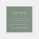 Cette nature rustique bois amusant faits mariages serviettes de la Collection Emelia sont parfaits pour une réception de mariage de destination boisée. Le design vert sauge foncé présente une typographie rustique et simple avec une atmosphère de montagne boisée. Personnalisez vos serviettes de cocktail en papier avec les noms du couple et quelques faits amusants à leur sujet. Ces serviettes peuvent être utilisées pour la réception de mariage, le dîner de répétition, la fête de fiançailles et plus encore!