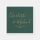 Serviettes de mariage couleur vert émeraude et or élégantes avec des noms de style signature, ces serviettes modernes peuvent être personnalisées avec vos noms et date spéciale. Conçu par Thisisnotme©