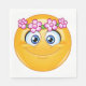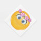Une émoticône jaune portant une couronne florale autour de la tête. Ce design semble vraiment efficace sur ces serviettes en papier