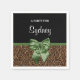 Restez à la mode avec ces serviettes en papier empreinte de léopard en fourrure brune élégante et un élégant ruban vert foncé attaché dans un arc chic. Personnalisez ce design poster de animal moderne et élégant en ajoutant le nom de la fille du parti. Image imprimée plate, PAS de fourrure ou de ruban réel.