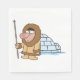 Un eskimo habillé chaudement près de son igloo. Ce design semble vraiment efficace sur ces serviettes en papier