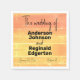Été Rustique Décontracté Jaune Pêche Joyeux Motif Mellow. Célébrez vos nuptiaux d'été décontractés, le renouvellement des voeux ou d'autres occasions avec cette Happy Mellow orangey jaune et rose pêche design motif décontracté. Ce design est adapté à tous les âges et sexes, et est parfait pour le printemps et l'été. Conception créée à partir d'une photo originale prise par le concepteur d'un coucher de soleil à San Diego, Californie, puis numériquement texturisée. Description de la conception : La conception est en quatre parties. La partie supérieure est une couleur pêche rose, la deuxième partie passe de la couleur pêche rose à un jaune moyen, et les deux parties inférieures sont de jaune moyen. Les sections sont divisées par des lignes rugueuses plus légères que les couleurs principales. L'ensemble du design a des taches qui le rendent déprimé, comme si les couleurs étaient appliquées de façon désinvolte et incomplète. Description du texte : Le texte avant a le texte modèle Le mariage de dans une police de script décontracté sur la section de pêche rose supérieure. En dessous, des modèles pour les noms des deux personnes qui se marient, dans une grande police arrondie et audacieuse. L'oeil est attiré par les noms. En dessous, dans la même police de caractères plus petite, les modèles pour la date et l'emplacement, par exemple, la salle de bal d'un hôtel.