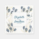 Simples et élégantes, ces serviettes mariages d'aquarelle personnalisées sont l'ajout parfait à votre grande fête du printemps ou de l'été. Les branches d'eucalyptus bleu aquarelle peintes à la main sont ornées de feuilles floraux dorés. Le texte bleu et vert peut être modifié pour répondre à tous les besoins de planification de votre parti.