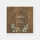 Ces serviettes tendance et élégantes présentent une couronne de feuilles d'eucalyptus vertes à l'aquarelle et un cadre géométrique en or faux sur un fond en bois marron. Vous pouvez facilement modifier le texte, ce qui rend cela parfait pour une baby shower ou une réception de mariage.