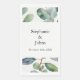 Conçu avec de jolies peintures feuilles d'eucalyptus générées par l'ai dans de jolies couleurs vertes et bleues poussiéreuses, avec modèle texte personnalisé pour le nom et la date que vous pouvez customiser! Design élégant et simple pour mariages, fiançailles, douches nuptiales, soirée bacheloertte et plus !