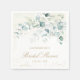 Élégante serviette de Fête des mariées avec des feuilles d'eucalyptus et de la verdure avec des taches de parties scintillant en faux or, sur un lavage pastel aquarelle. Vous trouverez ci-dessous votre nom, la date du titre de l'événement dans un ton doré. Ce design rustique est parfait pour une douche de mariée à thème botanique en été.