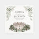 Ce design présente un magnifique manoir de campagne orné de fleurs blanches et de verdure.