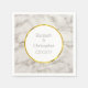 Serviettes en papier personnalisées pour un mariage ou un autre événement. Conçu avec une élégante texture arrière - plan d'albâtre en marbre FAUX. Taupe / tan et crème se mélangent, créant des motifs intéressants pour un look moderne et élégant. Donnez des détails à votre mariage à l'intérieur d'un cercle blanc avec une fausse bordure en feuille d'or.