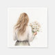 Aquarelle d'une jeune femme avec un bouquet marguerrier sur un arrière - plan blanc.