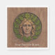 Une Femme Verte sculptée dans le bois avec de la peinture appliquée aux feuilles de chêne et cheveux. Customisez en ajoutant votre propre texte. Également connu comme tête de feuillage, le Green Man/Wild Man, est un motif d'architecture et d'art, un visage composé ou complètement entouré de feuillage, le plus souvent s'étalant du centre du visage. Outre une fonction purement décorative, l'homme vert est interprété comme un symbole de renaissance, représentant le cycle de la nouvelle croissance qui se produit chaque printemps. Trouvé dans de nombreuses cultures de plusieurs âges à travers le monde, l'Homme Vert est souvent apparenté à des divinités de végétation naturelle. L'équivalent féminin de l'Homme Vert est souvent appelé la Femme Verte ou la Sheela-Na-Gig. Ces personnages, souvent représentés avec une couronne feuillue ou des cheveux luxuriants, symbolisant son lien avec le monde naturel, sont associés à la fertilité, la nature et la nature sauvage. Dans certains contextes, la "Femme sauvage" ou le "Glaistig" (un esprit marin dans le folklore écossais) peuvent également être considérés comme des équivalents féminins de l'Homme vert, représentant différents aspects de la sauvagerie et du pouvoir de la nature.