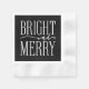 Typographie blanche festive moderne minimaliste "BRIGHT and MERRY" sur bloc de couleur noire, serviettes en papier de vacances.
