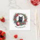 Si vous aimez les chats et Noël, vous aimerez ce design sur des serviettes en papier. Il est orné d'un chaton noir mignon assis dans une couronne de décorations de Noël. La couronne est faite de branches de pins et de fleurs rouges. Ce design est parfait pour les amoureux de les chats et est parfait pour les vacances.