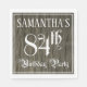 Ce design de serviette en papier à thème fantaisie et orné de fête d'anniversaire comporte un nom personnalisable et le message "84th Birthday Party". Le grand numéro "84th" et les mots "Birthday Party" sont dans un texte élaboré de style script, et l'arrière - plan présente un motif imitation/imitation bois inspiré du grain. Des serviettes en papier élégantes et sophistiquées comme celle-ci pourraient être utiles à une fête d’anniversaire organisée pour célébrer le quatre-vingt-quatrième anniversaire de quelqu’un. [~Z0000564]