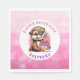 Pink Otter thème fête d'anniversaire serviettes en papier. Mignonne loutre de dessin animé tenant un gâteau d'anniversaire. Ajoutez le nom de l'enfant dans la zone de personnalisation.