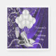 Serviettes en papier fête d'anniversaire femme violet et argent avec de belles chaussures à paillettes argentées sur un joli ballon en satin violet, perles et fond de tourbillon de champagne. Vous pouvez ajouter votre propre texte et supprimer le verre de champagne.