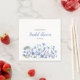 Serviettes pour fête de mariage florales bleues. Facile de modifier le texte. Jolies fleurs sauvages aquarelles.