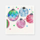 Cette serviette de Noël ornementée est parfaite pour un événement festif. L'aquarelle présente des boules de Noël colorées pendantes avec des confettis rouge vert et bleu.