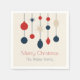 Cute retro Joyeuses serviettes en papier de fête de Noël avec des ornements de style 70 vintages en rouge, bleu et ivoire au-dessus de votre nom de famille. Beau décor de vacances nostalgique pour vos dîners.