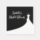 Un blanc éclatant et une robe de mariée élégante sur un arrière - plan noir classique accentuent cette serviette de douche nuptiale, la rendant parfaite pour une douche à thème noir et blanc, Halloween ou gothique. Il s'harmonise parfaitement avec l'Elegant Fête des mariées Collection en noir.