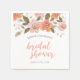 Serviettes à Fête des mariées florale raffinées avec floral délicat à l'aquarelle avec les mots "Fête des mariées" dans le script de brosse à pêche tendance qui est parfait pour une douche de printemps ou d'été. Personnalisez-le avec vos détails en remplaçant le texte de l'espace réservé. Pour plus d'options comme changer la police, la taille du texte/la couleur, l'espacement entre les lettres ou pour contracter ou développer le texte courbe cliquez sur le bouton "Personnaliser". *Veuillez noter que le filigrane Zazzle qui apparaît dans l'aperçu du zoom n'apparaîtra pas sur le produit imprimé final. © Bois de rose et agrumes