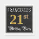 Ce design de serviette en papier orné et fantaisie, sur le thème de l'anniversaire, comporte un nom personnalisé et le message "21st Birthday Party". Le grand numéro "21st" a un motif de coloriage d'inspiration fausse/imitation or, et les mots "fête d'anniversaire" sont dans un texte de style script opulent. L'arrière - plan est coloré en noir par défaut (bien qu'il puisse être customisé). Des serviettes en papier luxueuses et opulentes comme celle-ci pourraient être utilisées lors d’une fête d’anniversaire ou d’une fête pour célébrer le 21e anniversaire de quelqu’un. [~Z0000565]